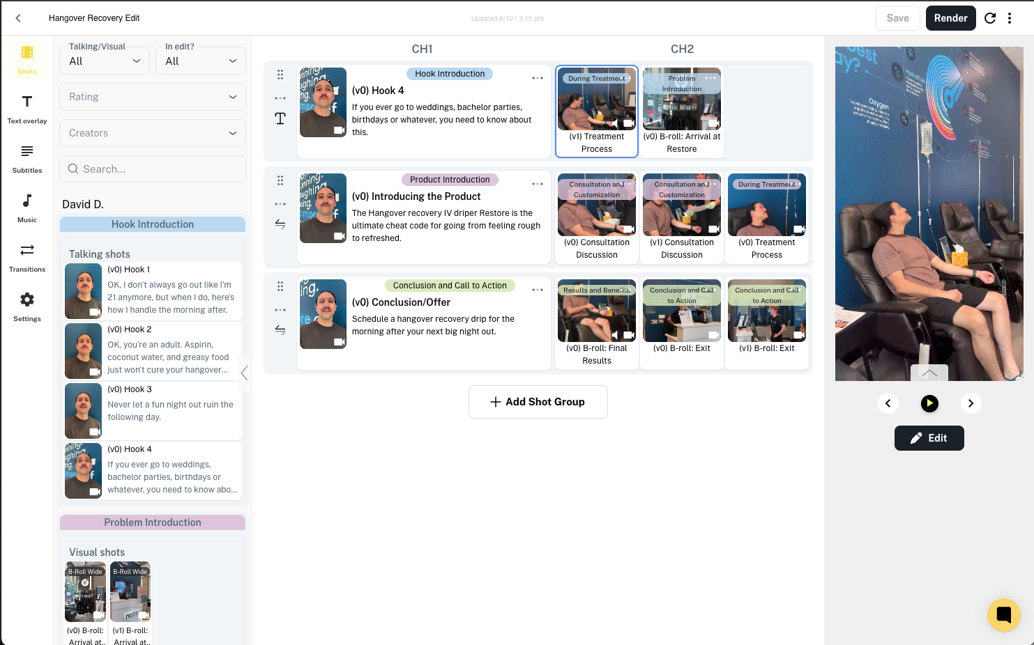 Testing multiple variations is key to finding what resonates with your audience. Same raw footage, different hooks and angles—discover what drives results.